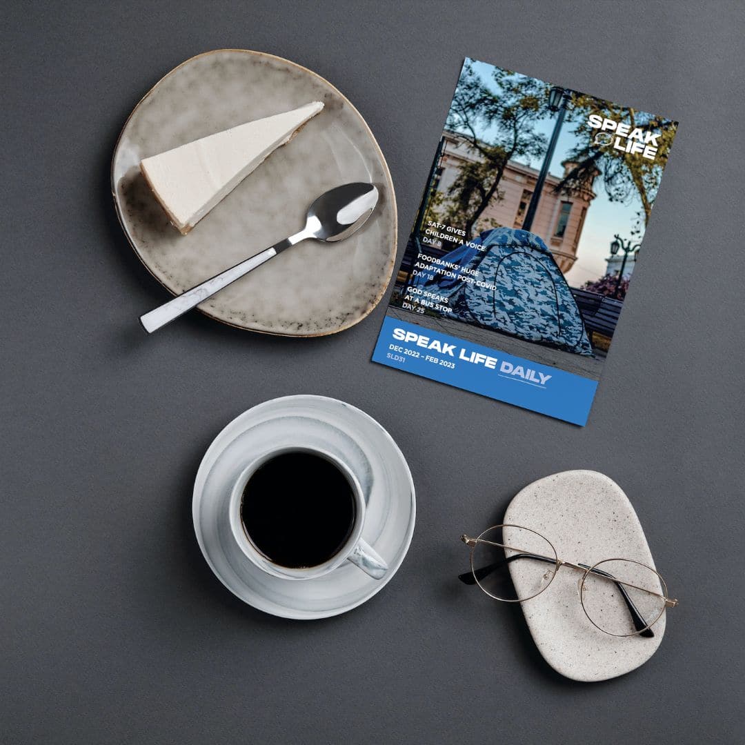 Our Speak Life Daily publication compiles news articles and stories, with contributions from Glen Scrivener and the Speak Life team. It seeks to give examples of how God is working in today's world. Distributed quarterly - at the start of March, June, September and December - each edition contains 31 good news stories from across the world, daily prayer points and study verses. Many have found this to be an excellent prayer resource and have been using it since its launch over 40 years ago.